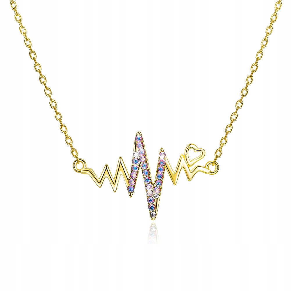 Naszyjnik SREBRO 925 cyrkonie Rytm Serca Złoty