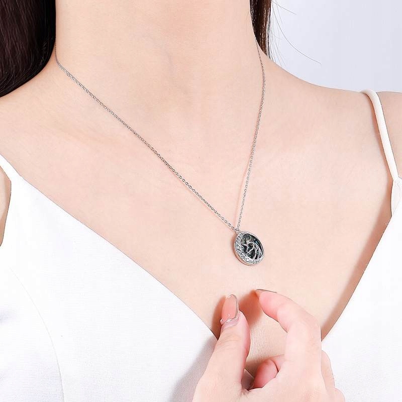 Naszyjnik wykonany ze srebra próby 925, zdobiony muszlą abalone.