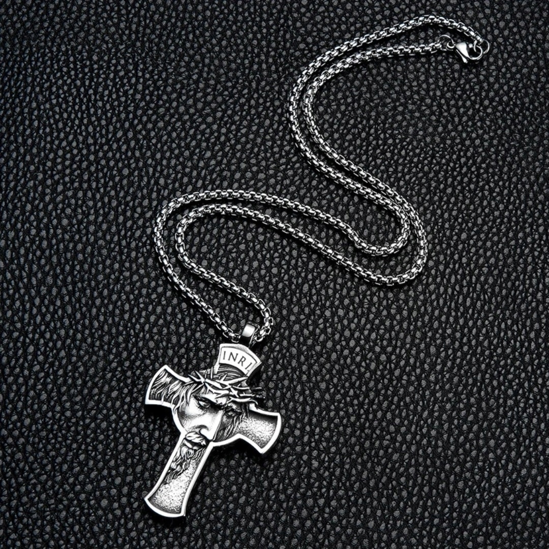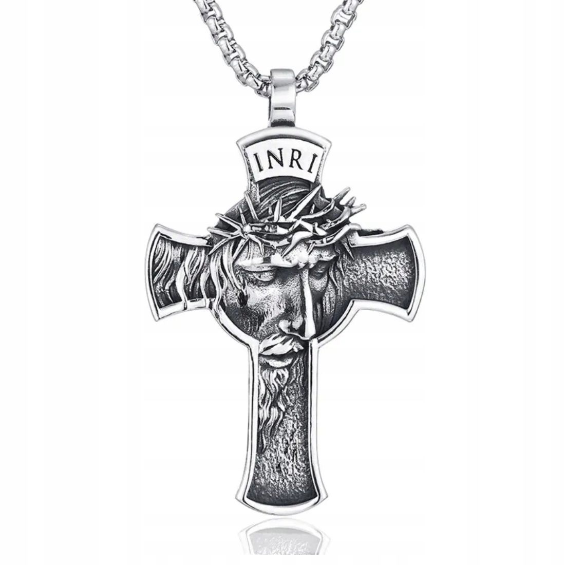 Naszyjnik Wisiorek męski Krzyż Jezus Chrystus Stal Chirurgiczna